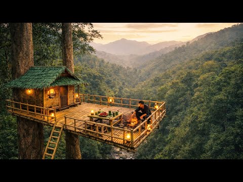 I Built a Survival Treehouse Between Two Giant Trees | Off Grid Jungle Living