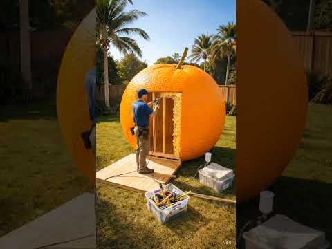 Turning a Gaint 12ft Orange πInto a Tiny Cinema Room Timelapse Build #expensive cinema #minicinema