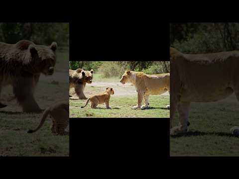A big brown bear chased a cub #hunting #wildlife #animals #bear #bearwatch #lion #shortsfeed #ai