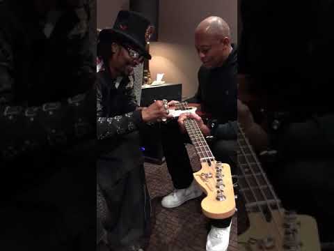 Bootsy Collins signing Dr. Dre's guitar (2018)