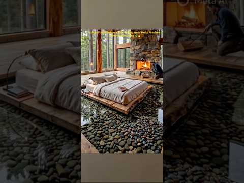 Luxury Forest Bedroom with Floating Wood Bed & Fireplace | Dream Nature Living 🌿🔥