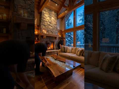 Luxury Organic Cabin Living Room ❄️ Cozy Fire & Snowy Forest