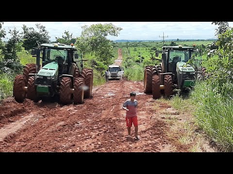 Arrastando carreta com trator Jonh Deere 8335R liberando a estrada!😁