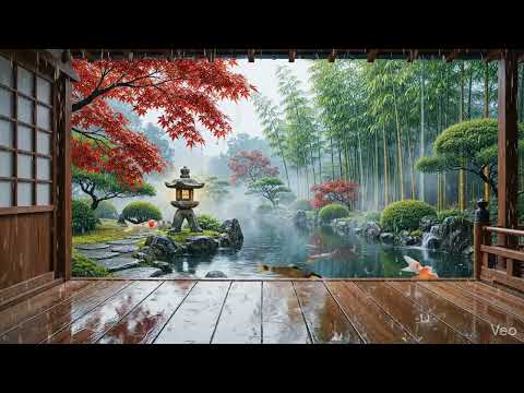 Rainy Japanese Temple Ambience for Deep Relaxation 🌸🏯🌧️