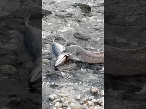Moray Eels Clash Over Mackerel Feast! 🐍🐟 #MorayEel #OceanLife #marinewildlife #natgeo