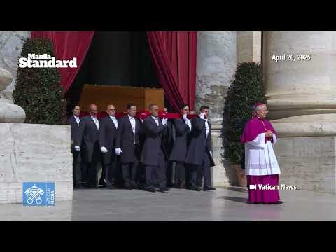 The MOMENT when POPE FRANCIS' COFFIN is carried out of ST. PETER'S SQUARE