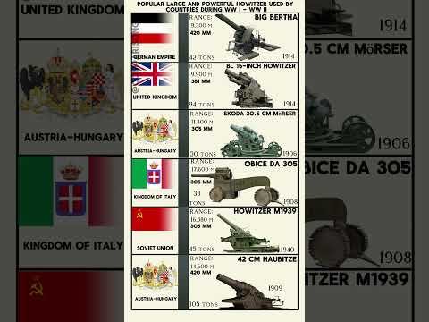 Popular Large And Powerful Howitzer - Artillery Used By Countries During WW I - WW II #shorts