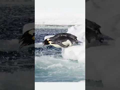 Adélie penguins diving into the sea #Antarctica #penguin #nature #wildlife #animal