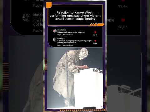 Reaction to Kanye West performing runaway under vibrant Israeli sunset stage lighting