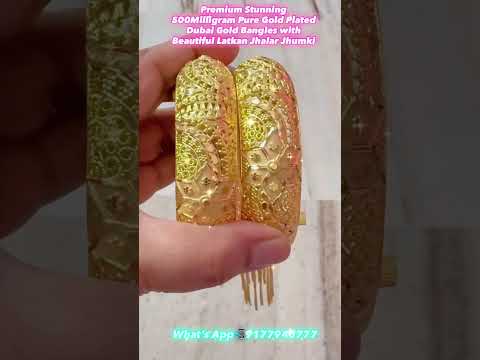 Premium 500Milligram Pure Gold Plated Dubai Gold Bangles with Jhallar Jhumki (Openable Kadae)#dubai