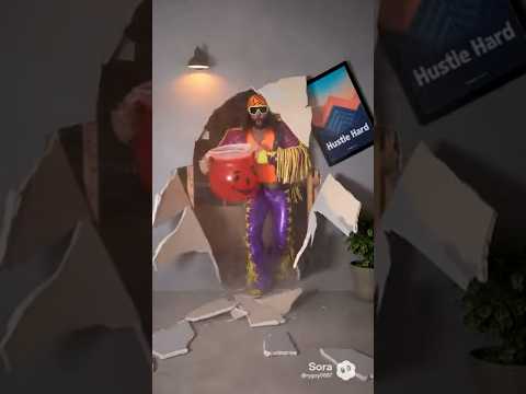 Macho Man crashes through wall like Kool-aid Man. #machomanrandysavage #koolaidman #sora #ai