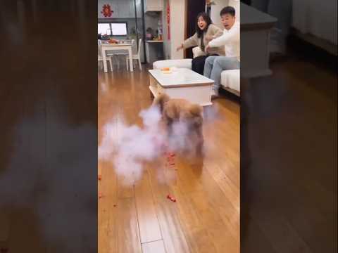 What happen when dog lights Firecracker #trending #shorts #funny #animal #blast