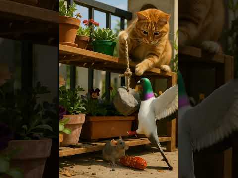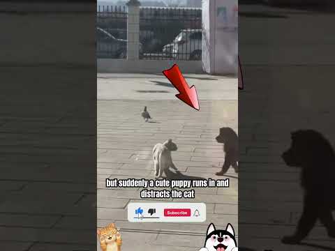 Cat Hunting a Pigeon… Until a Puppy Interrupts! 🐱🐶