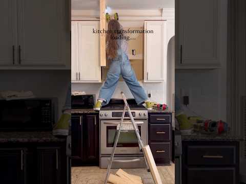 over here in the trenches🤠transformation coming soon #diy #diyshorts #kitchenmakeover #roommakeover