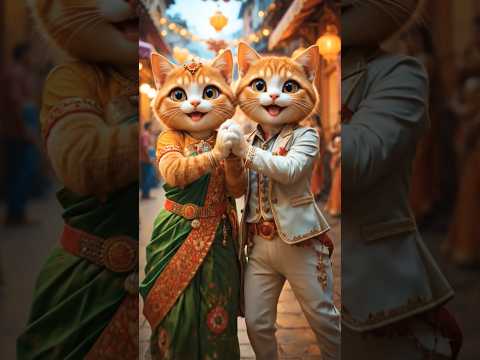 Two Cats Funny Dance Viral😹💃| Cute Saree Cat | Funny Suit Cat | #shorts #trending #ai #aicat