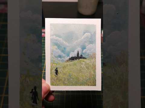 Part 1 of 25 - Miniature Painting Series⛰️🌾 #gouache #painting #miniaturepainting