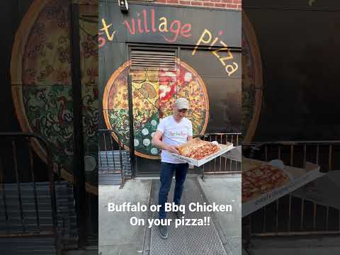 Half Buffalo and half BBQ Chickens Pizza!! New York City 🏙️ #eastvillagepizza