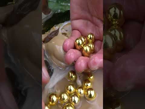 The mutated golden clam produces golden pearls#pearls #collect #collection