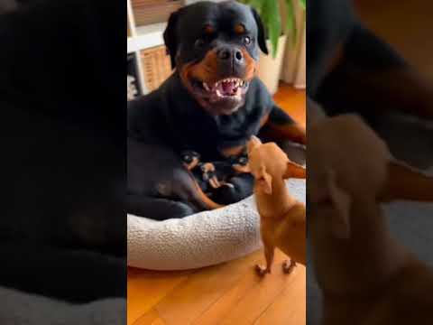 Chihuahua teasing Rottweiler and his Babies | Chihuahua vs Rottweiler | Funny Dog Videos #shorts
