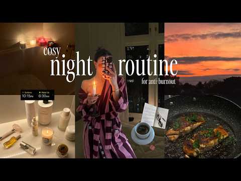 a cosy night routine for waking up early 🌙 home yoga, cosy winter evening habits, anti-burnout