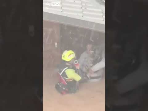 Rescuers pull drivers to safety during devastating floods in Spain #Shorts