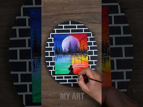 easy landscape acrylic painting | moodboard part1 #asmr #art #diy #yt #viral #shorts #drawing #love