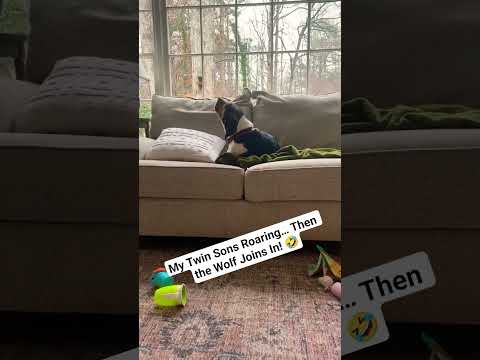 My Twin Sons Roaring Then behind him the Wolf Joins In! 🤣 #funnymoments #cute #twins#wolf#roaring