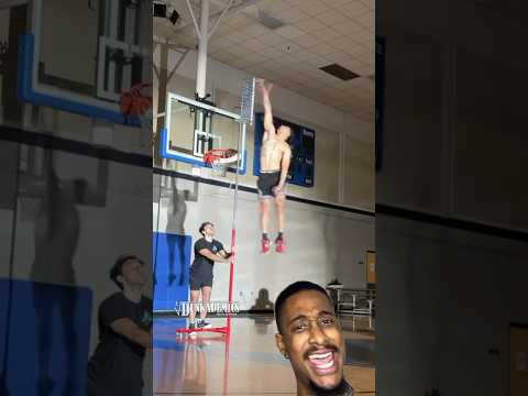 Insane vertical jump shuts the gym down! #basketball #dunk