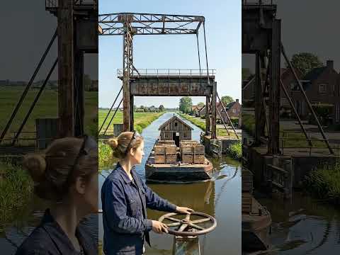 Giant Cargo Boat Carrying A Small House Crossing Bridge | Rare Transport
