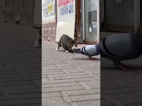 pigeon and cat fight 🤪 #fight #cat #pigeon