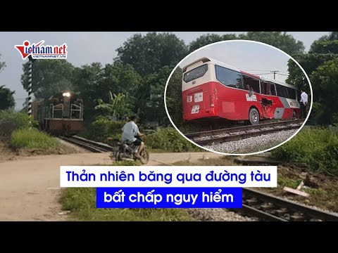 Người dân thản nhiên băng qua tàu hỏa ngay sau vụ tai nạn xe chở học sinh