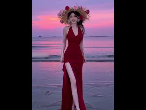 Taking life photos in a red dress by the seaside#Costume change#Transition#Seaside