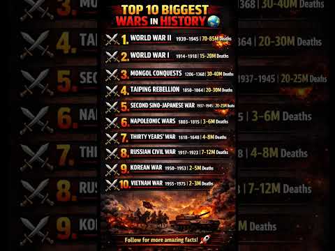 Top 10 Biggest Wars in History 😱 | Deadliest Conflicts Ever#shorts#war#fact#warfact#topten#famouswar