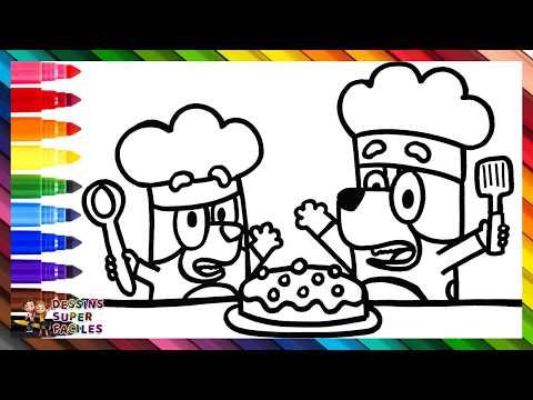 Dessiner et colorier Bluey et Bingo en train de faire un gΓ’teau πΆπ°π«πππΆπ dessins pour enfants
