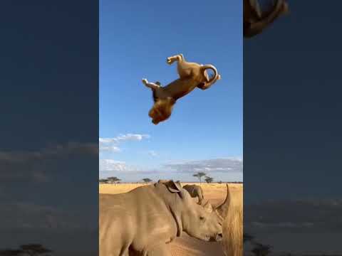Lion vs Rhinos 🎥 #animals #wildlife #viral #explore #fyp #foryou #action #rhino #lion