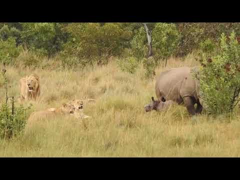 lions attack a rhino baby protect by mother rhino video