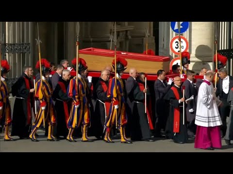 Pope Francis's coffin arrives in St Peter's Basilica for public mourning. #Pope #BBCNews