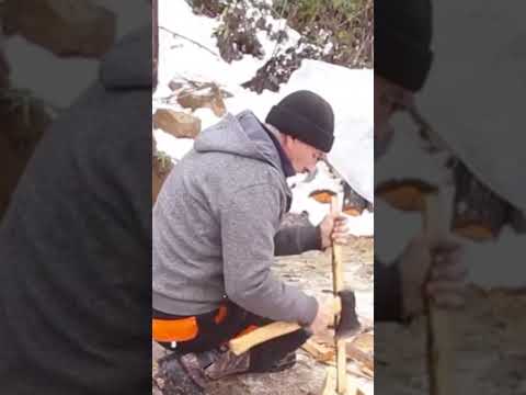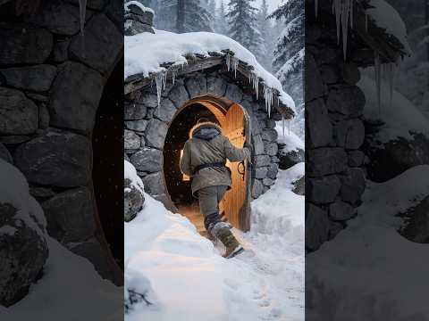 Winter Survival Cabin Build | Stone + Logs + Snow | Bushcraft ASMR #Shorts