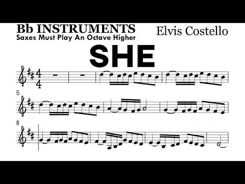 SHE by Elvis Costello Bb Instruments Sheet Music Backing Track Play Along Partitura