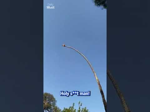 Tree surgeon risks his life by cutting 100-foot californian palm tree