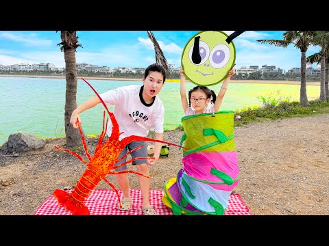 Changcady đi picnic, ra biển bắt cá, tìm được tôm hùm làm thức ăn