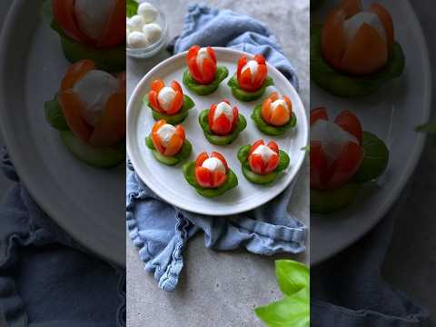 CUCUMBER, CHERRY TOMATO & MOZZARELLA FLOWER APPETIZERS #shorts #eathealthy