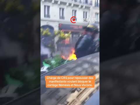 Les CRS repoussent des militants voulant bloquer le cortège de Némésis à la manifestation du 8 mars
