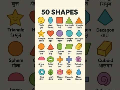 50 Shapes Name in English and Hindi for Kids | Fun Learning #shortfeeds #cartoon #shapesforkids