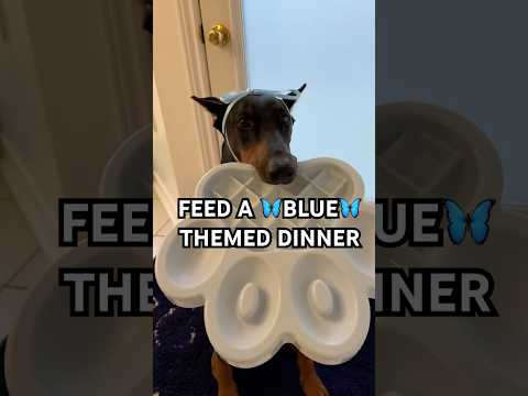 feed my dog a blue theme dinner 🦋 #dogshorts #dogfood #dogfeeding #doberman