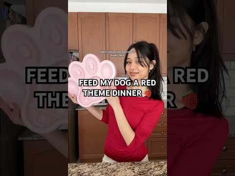 Let’s feed my dog a red theme dinner! 🍓🌹 #dogshorts #doberman #dogfeeding #dogfood