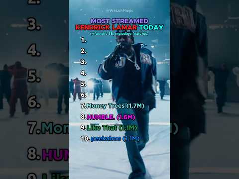 Most Streamed Kendrick Lamar Songs Today #kendricklamar #superbowl #halftime #rap #top10 #ranking