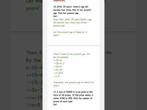 10.After 15 years, Hema's age will become four times that of her present age. Find her present age.