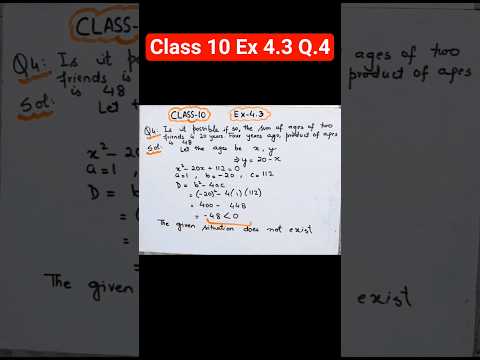 Sum of age of two friend is 20 years 4 year ago product of their age is 48 #shorts #class10 #ncert
