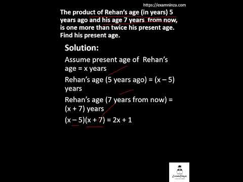 The product of Rehan’s age (in years) 5 years ago and his age 7 years from now, is #shorts